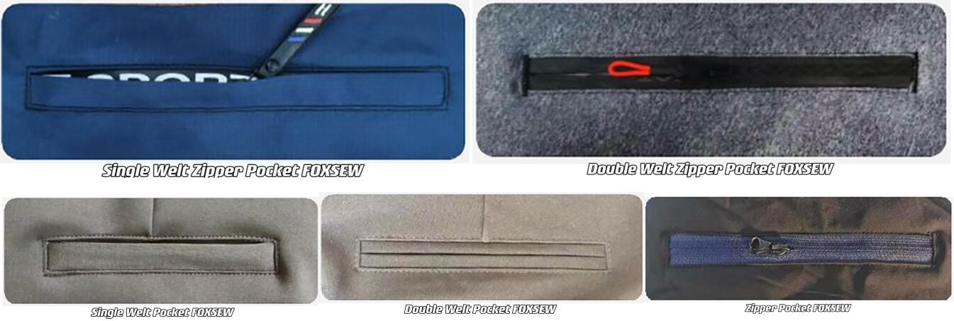Applications: Il convient à l'ouverture et à la couture de toutes sortes de poches telles que la poche de welt simple, la poche à double welt, la poche à fermeture éclair, la poche à fermeture à glissière unique, la poche à fermeture éclair double à double welt, etc.