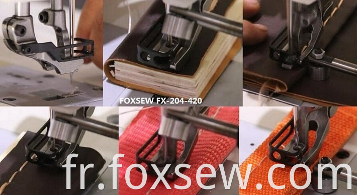 Caractéristiques: Même la couture avec de longues longueurs de point et des fils épais, le FX-204-420 est caractérisé par un excellent motif de point et une formation de point uniformément serrée, pour la conception extrêmement robuste de ses parties mécaniques et l'action d'alimentation améliorée. Cette machine avec un crochet de navette cylindrique lourd est conçue pour le traitement du fil et du matériau extrêmes, tels que la fabrication de maroquinerie, de textile spécial, de canapé, de meubles, de coussin de siège d'auto, de rembourrage de voiture, de tentes, de harnais, de selles et d'industrie de la décoration.